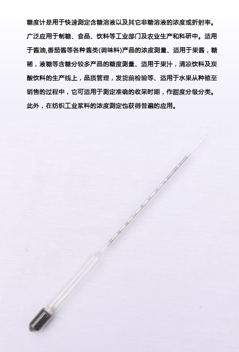 主要用于快速測定含糖溶液以及其它非糖溶液的濃度或折射率。 |